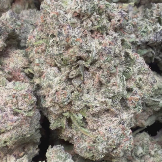 Chunky, frosty buds ❄️ with lime green hues 💚, amber pistils 🧡, and a heavy coat of shimmering trichomes ✨.💨 Effects: