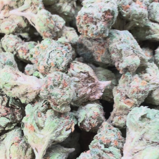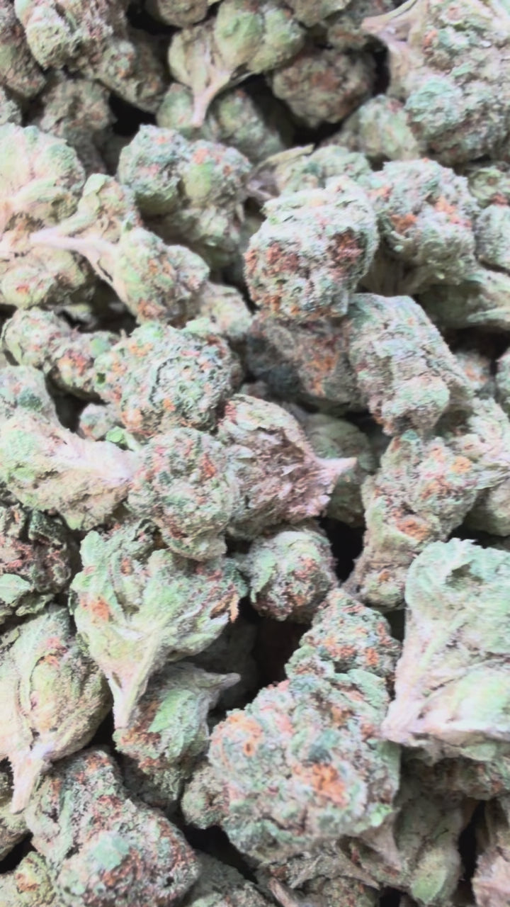 Frosty, chunky buds with deep greens and purples, fiery orange hairs, and a sweet gas aroma that lingers. Smokes creamy-smooth with a heavy Biscotti funk.