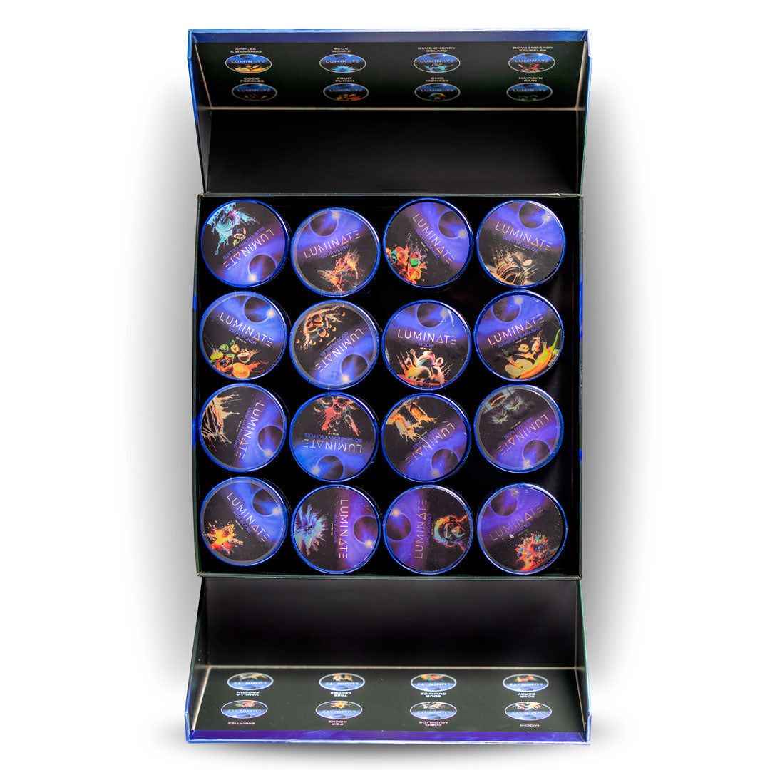 Stock up and shine bright with our LUMINATE Live Resin Sugar in a convenient 16-pack bulk box. Each 1-ounce jar delivers premium live resin sugar with that perfect crystalline texture and potent flavor profile. Perfect for enthusiasts who demand quality and quantity—grab a full pound of pure luminescence and keep your stash glowing all month long. Bulk pricing means more savings, more product, more good vibes.