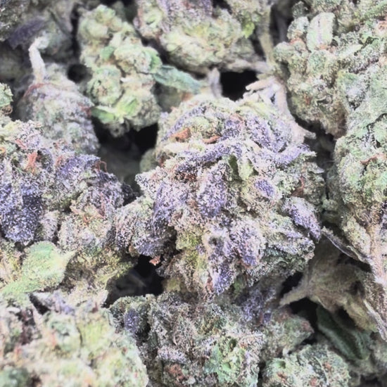Dense, frosty buds with green and purple tones and sticky resin. Smells fruity at first, then opens into diesel-gas funk.Summary